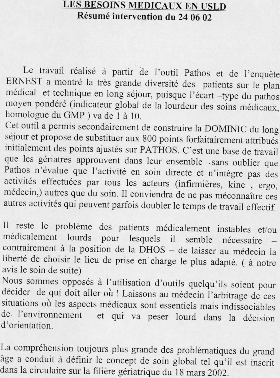 Intervention de la représentante du SNGC au colloque du 24 juin 2002 sur l'avenir des USLD en France.