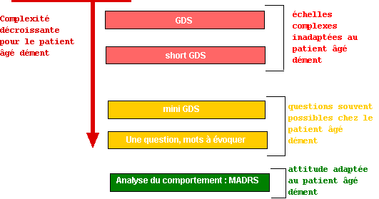 (Geriatric Depression Scale), en particulier sous sa forme courte (17). Lorsque la démence s’aggrave, la