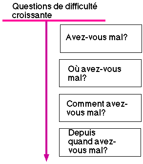 - courtes, utilisant des mots habituels : “avez-vous mal ?”, “où avez-vous mal